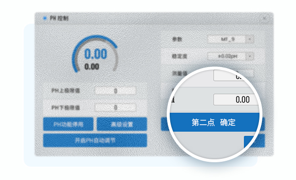 ⑤ 將玻璃球泡部分浸沒在第二種緩衝液(例pH=9.18)內(隔膜應完全浸沒在緩衝液中),待標準值穩定後(30秒至60秒)點擊第二點確認,第二點標定結束,等待使用(建議時間不要太長)。