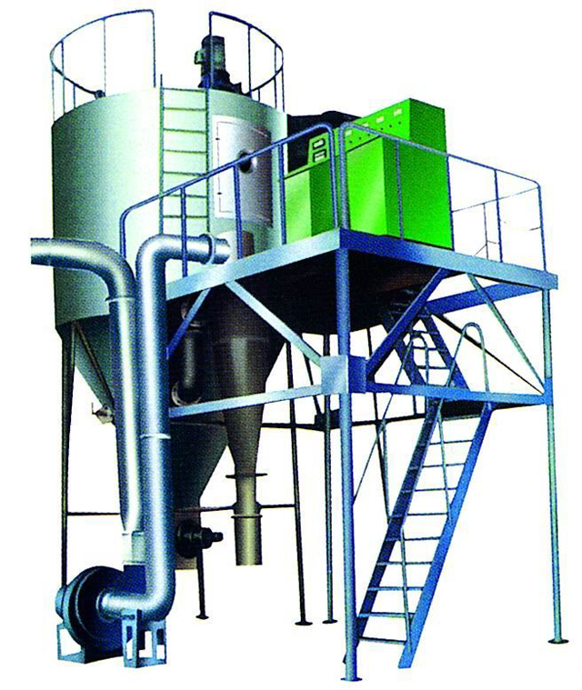 離心噴霧幹燥機采用高速離心運動的盤式霧化,將物料霧化成霧狀液滴,與經過特殊分布進入塔體的熱空氣在相配合的運動軌跡中同時進行熱交換,在極短時間內蒸發掉水份,形成均勻有粉狀幹成品。離心噴霧幹燥機廣泛用於化工、食品、醫藥、石化、輕工、農藥等行業的幹燥作用。