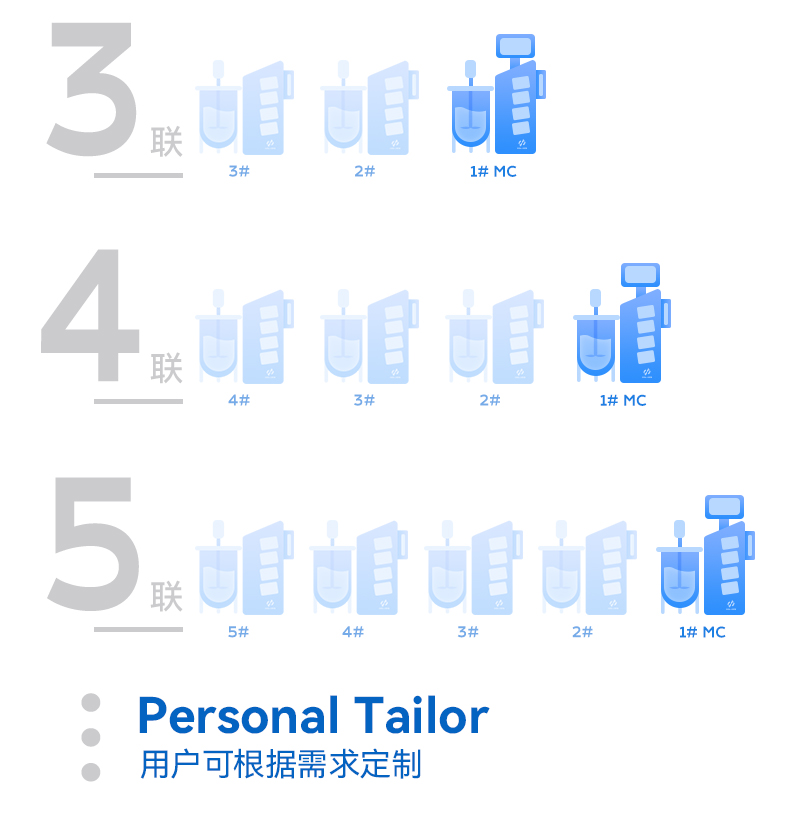 模塊化設計理念使得Cla210係列是多聯罐的最佳呈現係統,通過搭積木的方式,輕鬆實現雙聯罐、三聯罐、四聯罐、五聯罐和六聯罐,以及更多的聯罐係統,用戶可以分開使用,也可以統控使用,對於需求不同的用戶和場景極具適應性與兼容性。